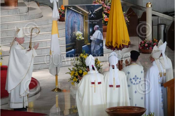 CIUDAD DE MÉXICO, 21ABRIL2025.- Carlos Aguiar Retes, actual Arzobispo Primado de México, encabezó la solemne Eucaristía por la muerte del papa Francisco en la Basílica de Guadalupe. Su extensa trayectoria dentro de la vida eclesiástica y su cercanía con el papa Francisco lo han colocado entre los nombres que podrían considerarse para sucederlo en el Vaticano. FOTO: GRACIELA LÓPEZ/CUARTOSCURO.COM