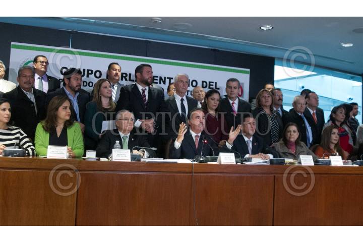 CIUDAD DE MÉXICO., 25OCTUBRE2017.- Los senadores del PVEM y PRI encabezados por sus coordinadores Emilio Gamboa Patrón y Carlos Alberto Puente salas, ofrecieron una conferencia de prensa luego de que hoy se cancelará la sesión por falta de quorum, en la cual se iba a comparecer Santigo Nieto, quien fue removido de la Fepade por instrucciones del encargado de despacho de la PGR, Alberto Elías Beltrán. FOTO: MOISÉS PABLO /CUARTOSCURO.COM