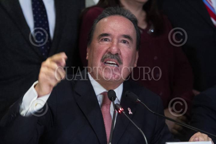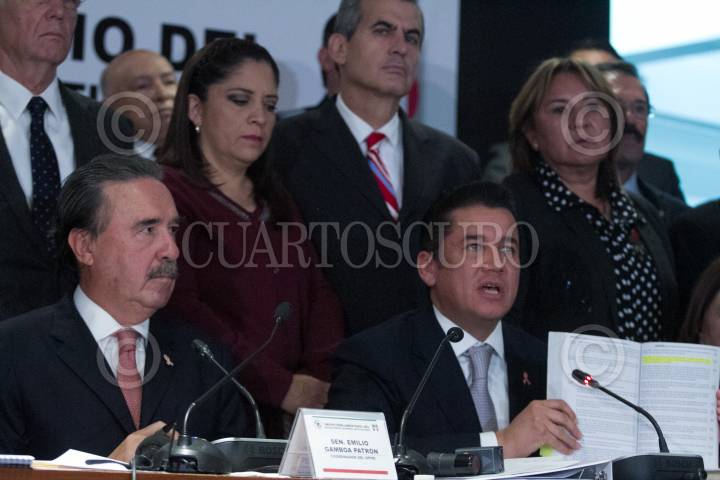 CIUDAD DE MÉXICO, 24OCTUBRE2017.- Los coordinadores parlamentarios Manuel Bartlett (PT); Luis Sánchez (PRD), y Fernando Herrera (PAN), ofrecieron una conferencia de prensa tras concluir una reunión de la Junta de Coordinación Política del Senado, en donde se discutió el formato de la reunión de trabajo con Santiago Nieto, titular de la Fepade, quien fue removido por el encargado de despacho de la PGR, Alberto Elías Beltrán, para el día de mañana. FOTO: MOISÉS PABLO /CUARTOSCURO.COM