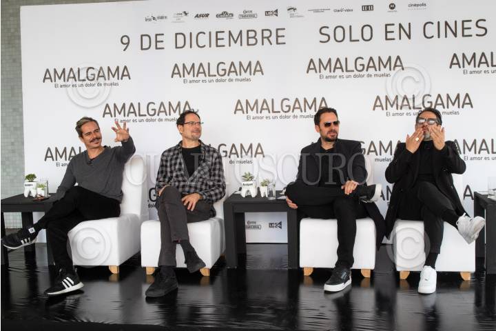 El director Carlos Cuarón y los actores Tony Dalton, Manolo Cardona, y Miguel Rodarte, participaron en la conferencia de prensa de la película Amalgama.