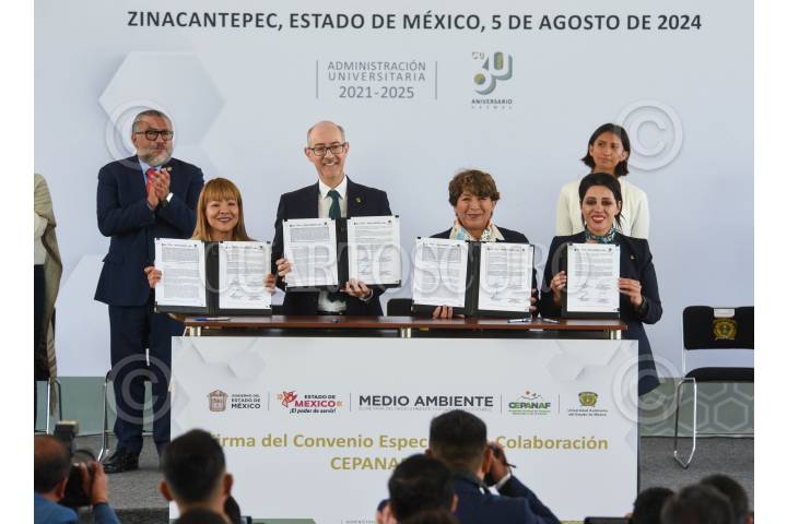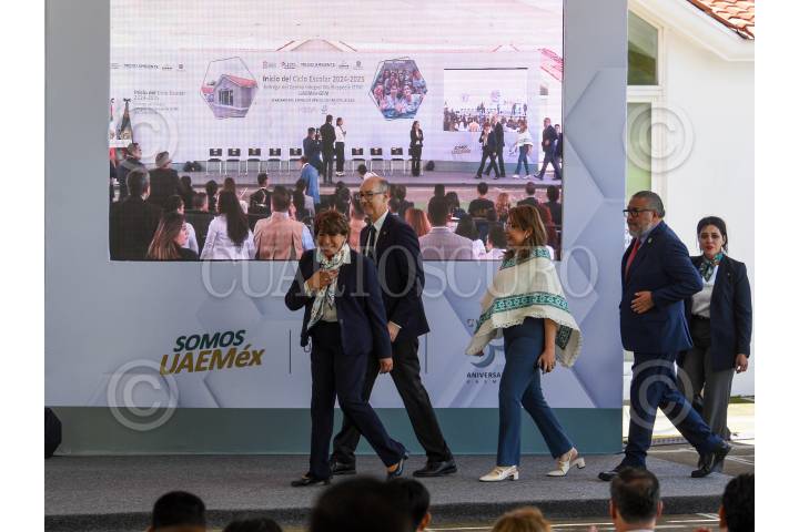 ZINACANTEPEC, ESTADO DE MÉXICO, 05AGOSTO2024.- Delfina Gómez Álvarez, Gobernadora del Estado de México acompañada por Carlos Eduardo Barrera Díaz, rector de la UAEMÉX encabezaron la Ceremonia de Inicio de Ciclo Escolar 2024-2025, la entrega del Centro Integral Multiespecie UAEMÉX-GEM, así como la firma de Convenio de Colaboración CEPANAF-UAEMÉX y la entrega de la Presea “Ignacio Ramírez Calzada” versión 2024. FOTO: CRISANTA ESPINOSA AGUILAR/ CUARTOSCURO.COM
