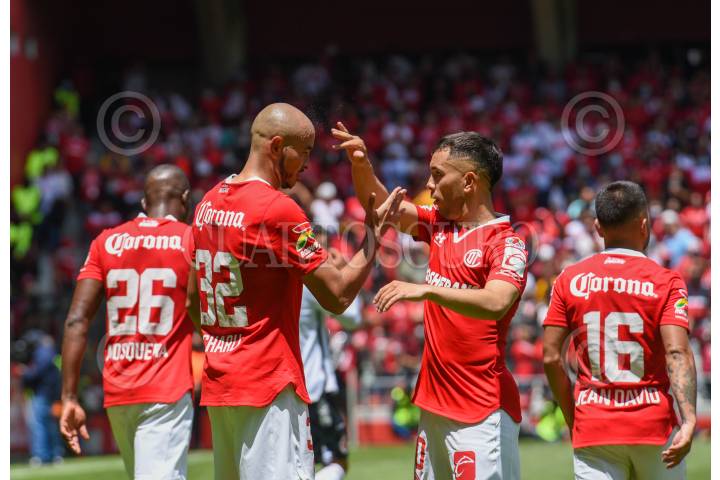 Carlos González delantero de los Diablos de Toluca festeja la segunda anotación ante el Atlético de San Luis durante la jornada 9 del Torneo Clausura 2023.