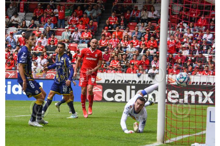 Marcelo Barovero portero del Atlético San Luis durante la anotación de Carlos González delantero de los Diablos de Toluca durante la jornada 9 del Torneo Clausura 2023.