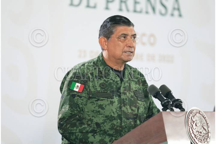 Luis Cresencio Sandoval durante la conferencia mañanera desde Villahermosa, Tabasco