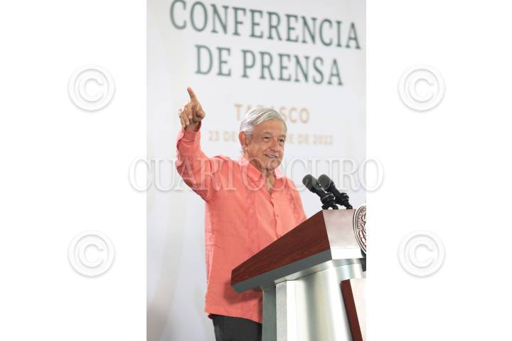 Andrés Manuel López Obrador durante la conferencia mañanera desde Villahermosa, Tabasco