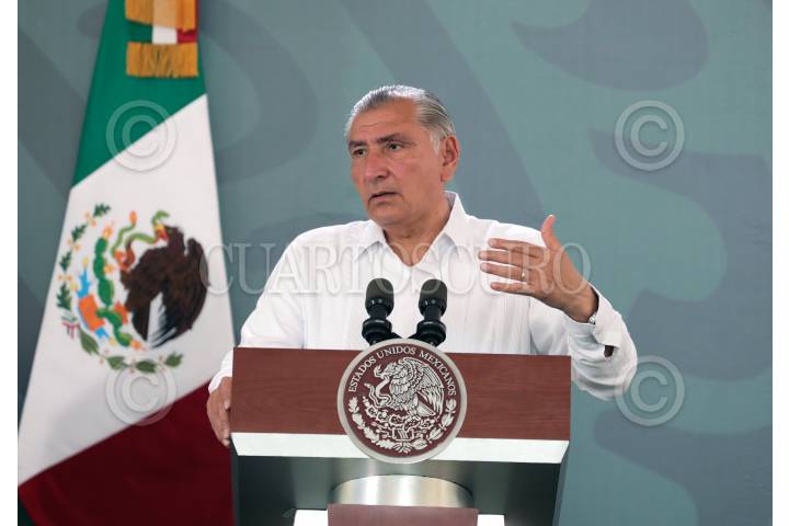 Adán Augusto López durante la conferencia mañanera desde Villahermosa, Tabasco