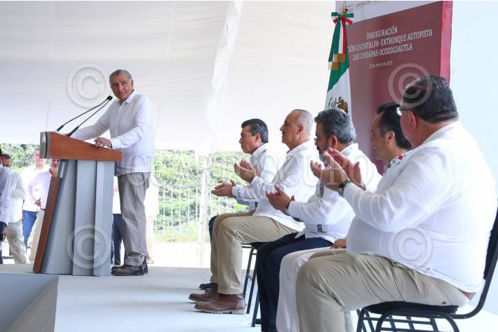 Adán Augusto López durante la inaguración del entronque de la carretera Choapas-Ocozocoautla