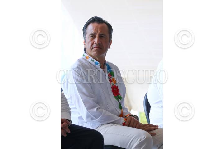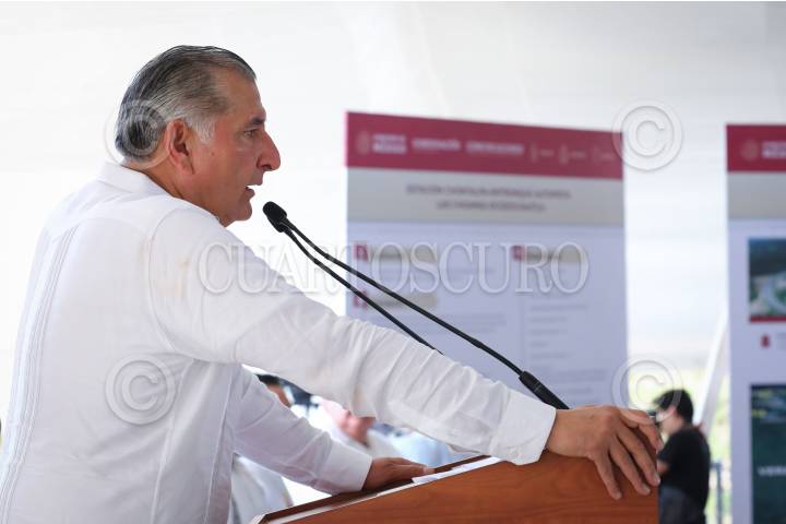 Cuitláhuac García durante la inaguración del entronque de la carretera Choapas-Ocozocoautla