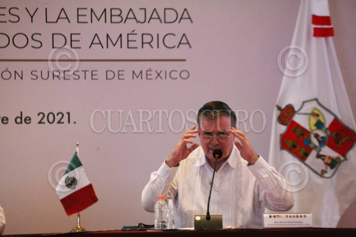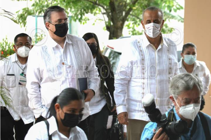 Marcelo Ebrard durante la reunión de gobernadores con el embajador Ken Salazar en Villahermosa, Tabasco