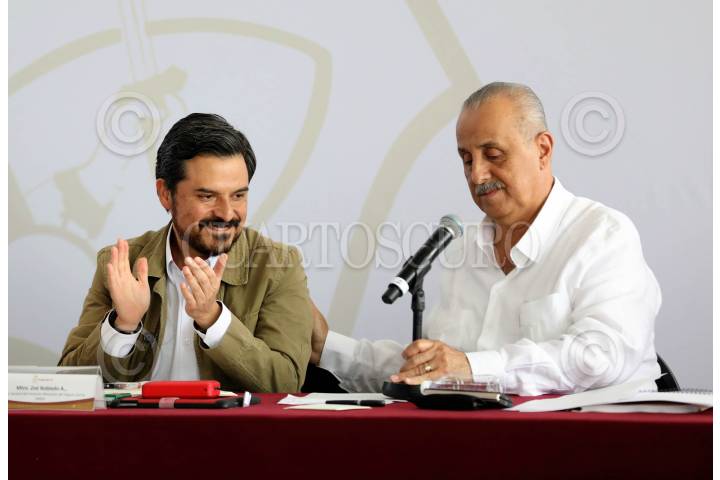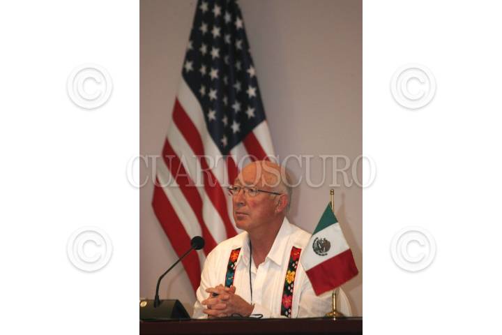 El embajador de E.U., en México Ken Salazar ofreció un Encuentro con Medios de Comunicación, donde lo acompaña el gobernador, Carlos Manuel Merino Campos.