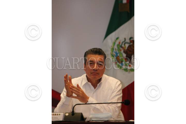 Rutilio Escandón Caadenas durante la reunión de gobernadores con el embajador Ken Salazar en Villahermosa, Tabasco
