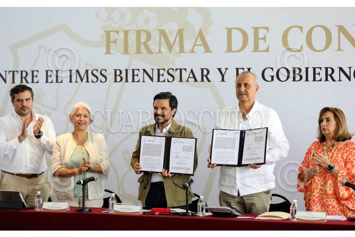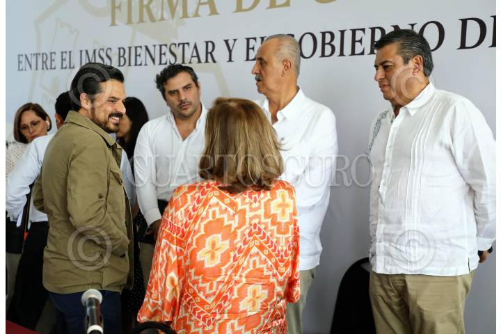 Zoé Robledo y Carlos Manuel Merino Campos firmaron un convenio entre el Seguro Social, gobierno de Tabasco y OPD IMSSS Bienestar para avanzar en transición de los servicios de salud.