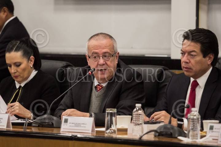 CIUDAD DE MÉXICO, 12DICIEMBRE2018.- Carlos Manuel Urzúa, secretario de Hacienda y Crédito Público, Mario Delgado, coordinador morenista, y Alfonso Ramírez Cuellar, presidente de la Comisión de Presupuesto, durante su participación en la reunión permanente de la Comisión de Hacienda y Crédito Público de la Cámara de Diputados. FOTO: GALO CAÑAS /CUARTOSCURO.COM