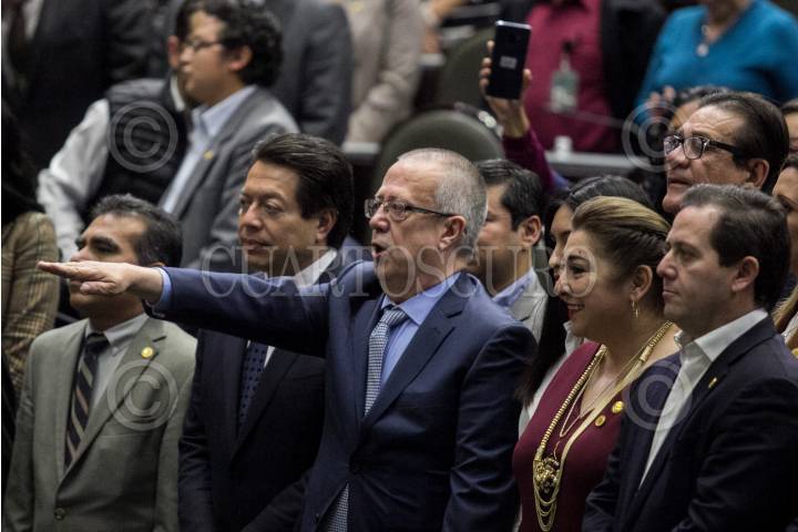 CIUDAD DE MÉXICO, 13DICIEMBRE2018.- Mario Delgado, coordinador de Morena, y Carlos Manuel Urzúa, secretario de Hacienda y Crédito Pública, durante la toma de protesta al cargo. FOTO: GALO CAÑAS /CUARTOSCURO.COM