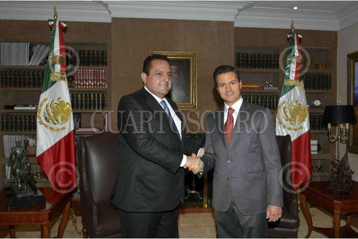 MÉXICO, D.F., 24JUNIO2015.- El Presidente de la República, Enrique Peña Nieto, se reunió esta tarde con el Gobernador Electo de Baja California Sur, Carlos Mendoza Davis. En el encuentro, celebrado en la Residencia Oficial de Los Pinos, el Titular del Ejecutivo Federal expresó su voluntad y compromiso de trabajar de manera coordinada con el mandatario estatal electo para atender los distintos requerimientos de la sociedad de esa entidad federativa. FOTO: PRESIDENCIA /CUARTOSCURO.COM