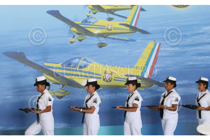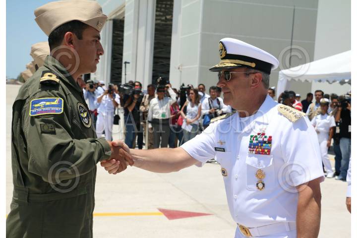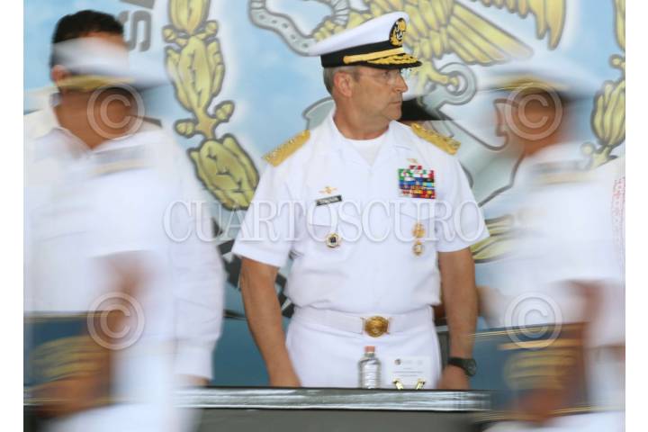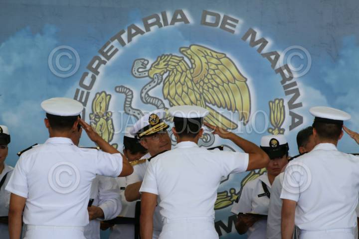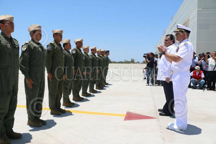 LA PAZ, BAJA CALIFORNIA SUR, 10JUNIO2016.- Vidal Francisco Soberon Sanz, Secretario de Marina y Armada de México acompañado del gobernador Carlos Mendoza Davis, encabezaron la ceremonia de graduación e imposición de alas de especialidades de piloto aviador naval ala fija y ala móvil de 33 egresados de la escuela de aviación naval. FOTO: SAÚL LÓPEZ /CUARTOSCURO.COM