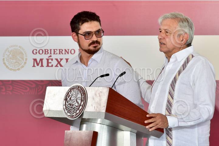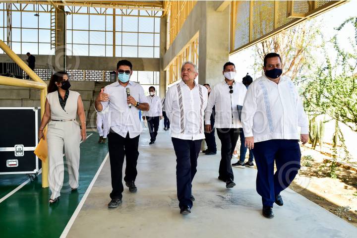 Román Meyer Falcón, secretario de Desarrollo Agrario, Territorial y Urbano, y Andrés Manuel López Obrador, presidente de México, durante el recorrido por los trabajos del programa Mejoramiento Urbano en la entidad de Los Cabos.