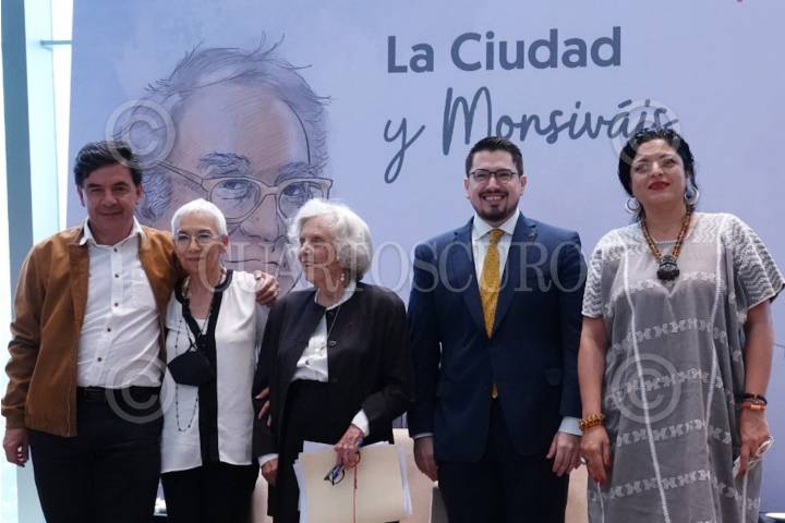 La escritora y periodista Elena Poniatowska, acompañada de Carlos Martínez Velázquez, director general del Infonavit; Alejandra Frausto, secretaria de Cultura, y el vocero Jesús Ramírez, ofrecieron una charla durante l programa "La Ciudad y Monsiváis", realizada en las inmediaciones del Infonavit.