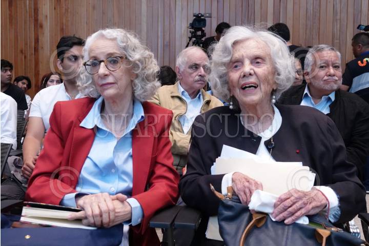 La escritoras Marta Lamas y Elena Poniatowska, durante una charla del programa "La Ciudad y Monsiváis", realizada en las inmediaciones del Infonavit