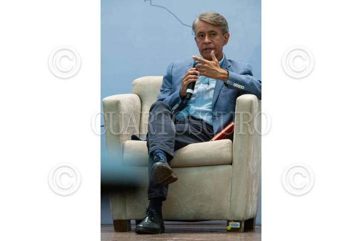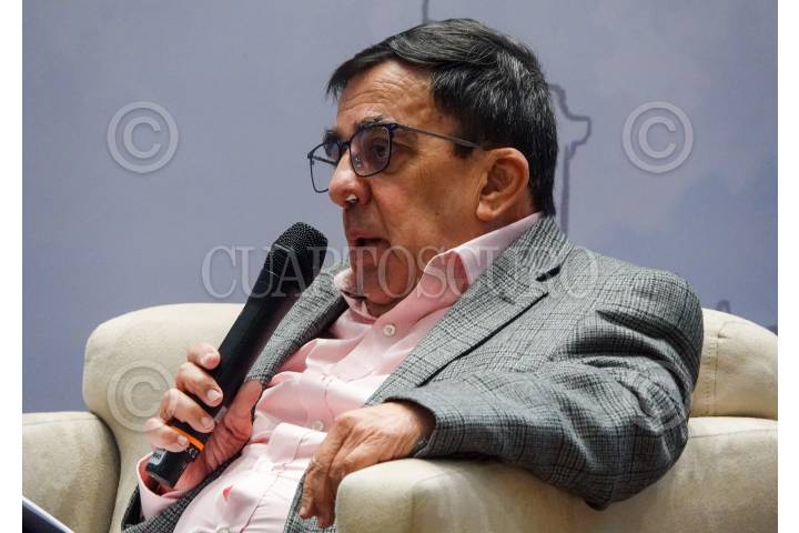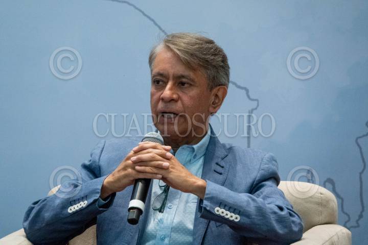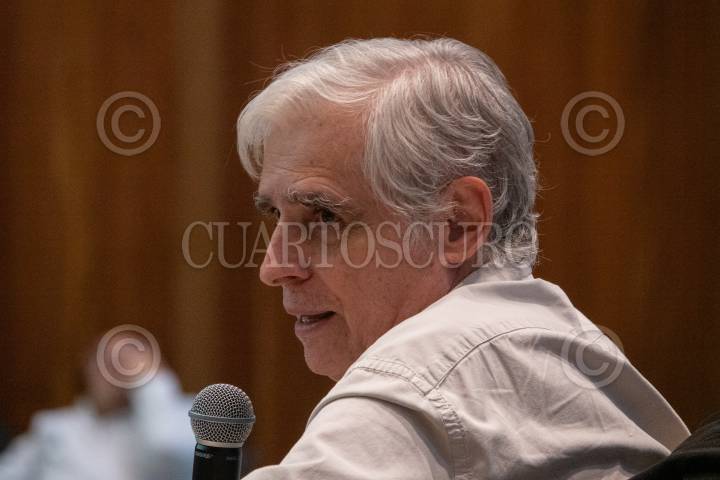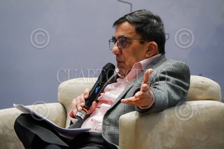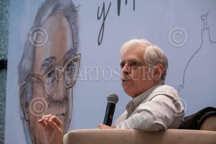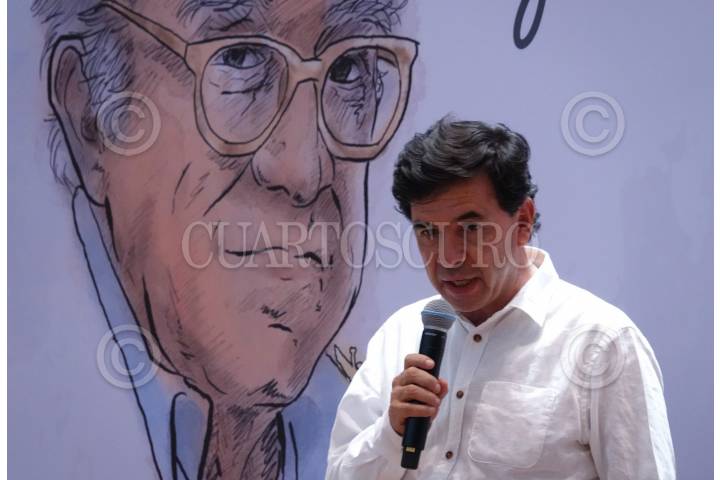Jorge Carrasco Araizaga durante la mesa “Terremoto 85” durante la segunda jornada de diálogos, actividades y experiencias urbanas “La Ciudad y Monsiváis” con motivo del 85 aniversario de su natalicio.
