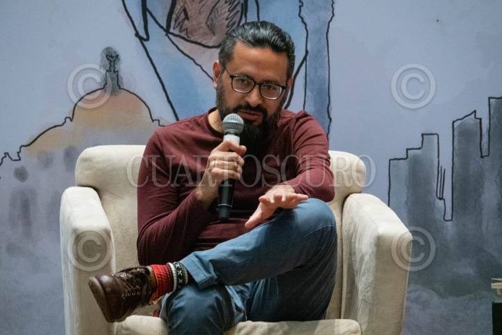 Jezreel Salazar durante la mesa “Terremoto 85” durante la segunda jornada de diálogos, actividades y experiencias urbanas “La Ciudad y Monsiváis” con motivo del 85 aniversario de su natalicio.