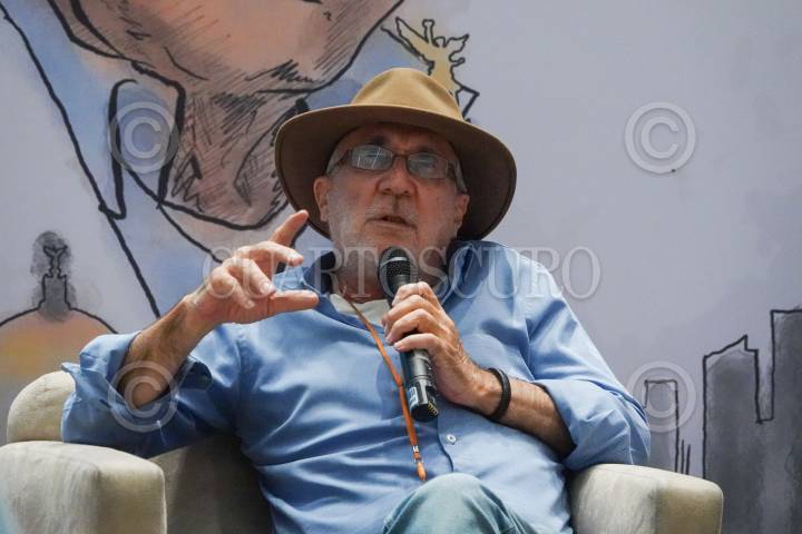 Rafael Barajas "El Fisgón" durante su conferencia magistral con motivo de la segunda jornada de diálogos, actividades y experiencias urbanas “La Ciudad y Monsiváis”