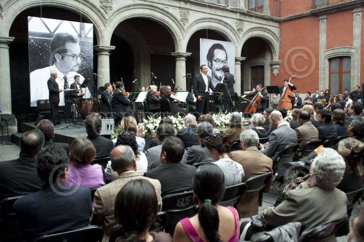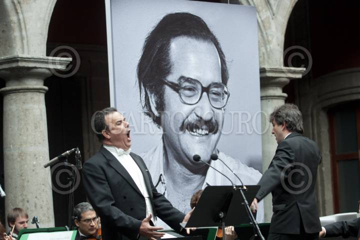 MÉXICO, D.F., 22MAYO2012.- Fernando de la Mora cantó en memoria del escritor Carlos Fuentes (1928-2012), durante un homenaje realizado en el Museo de la Ciudad de México encabezado por el Jefe de Gobierno Marcelo Ebrard, quien anunció que este recinto también llevará el nombre del autor de La Región más Transparente. FOTO: MOISÉS PABLO /CUARTOSCURO.COM