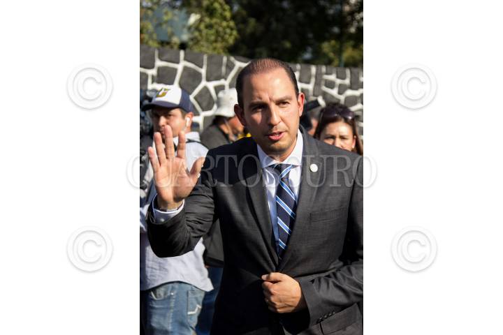 CIUDAD DE MÉXICO, 27ENERO2017.- Marko Cortés, coordinador parlamentario del PAN en Diputados, al termino de la reunión convocada por el presidente Enrique Peña Nieto con motivo de la relación Estados Unidos-México, así como las medida a tomar para la protección de los connacionales en el extranjero, por lo cual fueron aprobados 47, 8 millones de dólares para los consulados. FOTO: GALO CAÑAS /CUARTOSCURO.COM