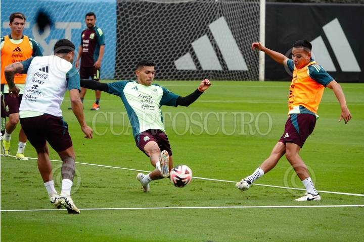 CIUDAD DE MÉXICO, 08OCTUBRE2024.- Orbelín Pineda y Carlos Rodríguez, durante el entrenamiento de la Selección Mexicana de Futbol en el Centro de Alto Rendimiento, previo a su encuentro amistosos frente al equipo de Valencia en el estadio Cuauhtémoc en Puebla. FOTOS: ROGELIO MORALES /CUARTOSCURO.COM