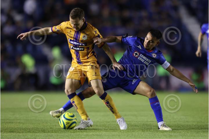 CIUDAD DE MÉXICO, 09NOVIEMBRE2024.- Fernando Gorriarán (8) y Carlos Rodríguez (19) durante el partido en qué Cruz Azul empató uno a uno contra los Tigres de la Autónoma de Nuevo León durante la jornada 17 del torneo Apertura 2024 de la Liga BBVA MX. FOTO: GALO CAÑAS/CUARTOSCURO.COM