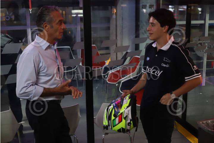 CIUDAD DE MÉXICO, 12JUNIO2025.- Carlos Slim Domit, presidente del Consejo de Administración de Telmex, dialoga con el piloto mexicano de Nascar México, Andrés Pérez de Lara. FOTO: DANIEL AUGUSTO/ CUARTOSCURO.COM