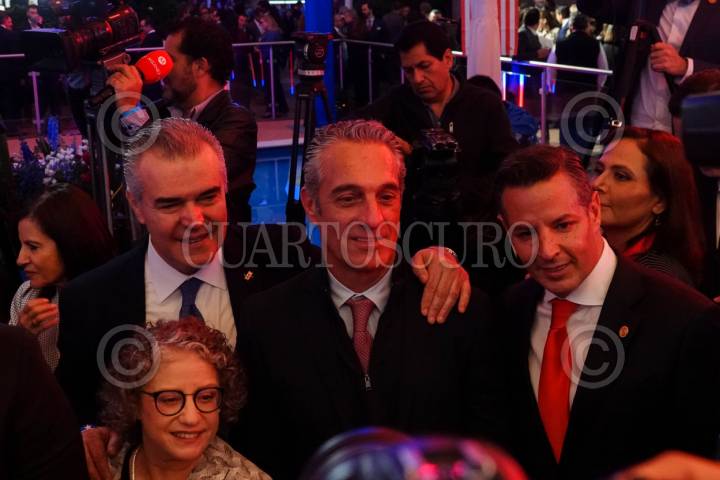 CIUDAD DE MÉXICO, 26JUNIO2025.- Francisco Cervantes, presidente del Consejo Coordinador Empresarial,  Carlos Slim Domit, Presidente del Consejo de Administración de Grupo Sanborns, y el senador Alejandro Murat durante la ceremonia con motivo de 249 Aniversario de la Independencia de los Estados Unidos, próxima a celebrarse el 4 de julio, en la residencia oficial de la embajada.  FOTO: GALO CAÑAS/CUARTOSCURO.COM