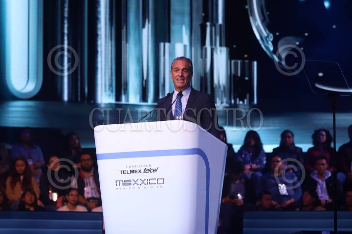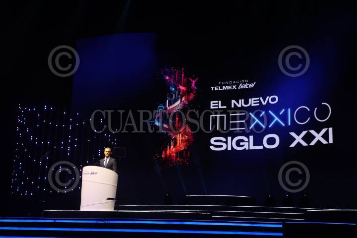 Carlos Slim Domit durante el inicio de actividades del foro organizando por la fundación TELMEX Telcel, México Siglo XXI, el encuentro anual de sus becarios con líderes mundiales, el cual se lleva a cabo en el Auditorio Nacional.