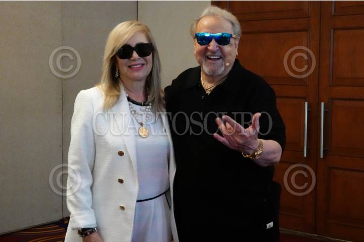 CIUDAD DE MÉXICO; 10JUNIO2025.- El actor Carlos Villagrán, conocido como "Kiko", acompañado de su esposa Emma Graciela Rivera durante su llegada a una conferencia de Conferencia del cáncer de próstata en donde compartió sus experiencias con esta enfermedad en el Hotel Marriot. FOTO: GRACIELA LÓPEZ /CUARTOSCURO.COM