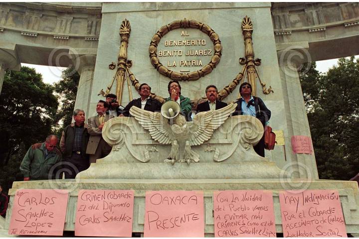 Oaxaqueños protestan en el Hemiciclo a Juárez por el asesinato del diputado Carlos Sánchez López, ocurrido dias atras. FOTO: Sandra Perdomo/CUARTOSCURO.COM