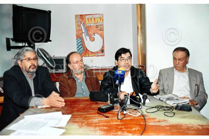 Marco Rascón, Salvador Nava, Oscar Moreno y Carlos Castro, integrantes del Comité ejecutivo nacional del PRD, en conferencia de prensa presentaron la propuesta dirigida a su presidente interino Leonel Godoy creada ante la ruptura de la dirección con la base del partido en todo el país. FOTO: Sandra Perdomo/CUARTOSCURO.COM