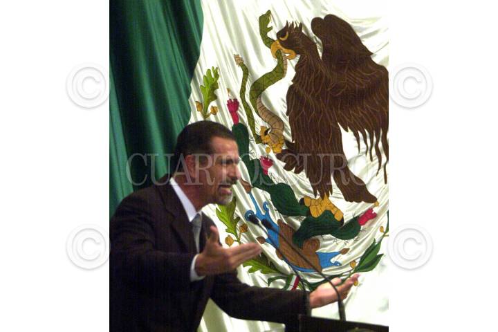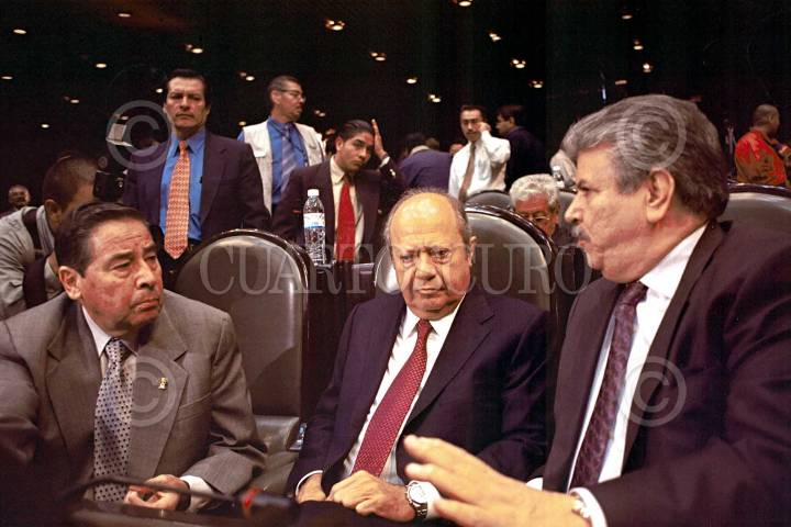 Después de más de una semana de no haber asistido a la Cámara de Diputados, Carlos Romero Deschamps, líder sindical de quien la PGR pide sus desafuero como diputado, apareció hoy en el pleno, para defenderse de las acusaciones que le imputan, acusando secretario de la Controlaría, Francisco Barrios Terrazas, de hacer uso político de esa denuncia. FOTO: Eunice Adorno/CUARTOSCURO.COM