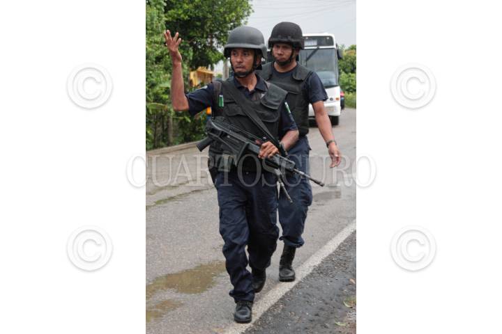 CÁRDENAS, TABASCO, 25OCTUBRE2009.- Elementos castrense de la 30 Zona Militar apoyados con Policías Estatales realizan fuerte operativo en los alrededores de esta municipalidad al igual que en Huimanguillo en donde montan retenes de revisiones con la intención de localizar algún indicio de drogas o de la captura de un presunto delincuente. De manera extra oficial revelan de la detención de al menos dos posibles integrantes de la célula delictiva denominada “La Compañía”, quienes fueron capturados en el interior del hotel Carmelita en el centro del municipio de Huimanguillo. FOTO: MARCO POLO GUZMÁN HERNÁNDEZ/CUARTOSCURO.COM