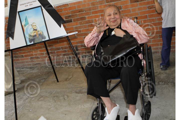 MÉXICO, D.F., 19JUNIO2010.- Carmelita, viuda del clavadista mexicano Joaquín Capilla, ganador de diversas medallas olímpicas obtenidas en distintos Juegos Olímpicos, Centroamericanos y Panamericanos, al termino de un homenaje póstumo que se celebró en la fosa de clavados de las instalaciones del Comité Olímpico Mexicano. FOTO: RODOLFO ANGULO/CUARTOSCURO.COM