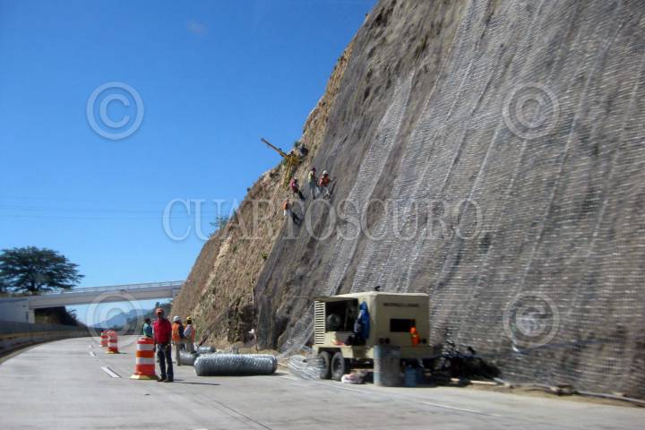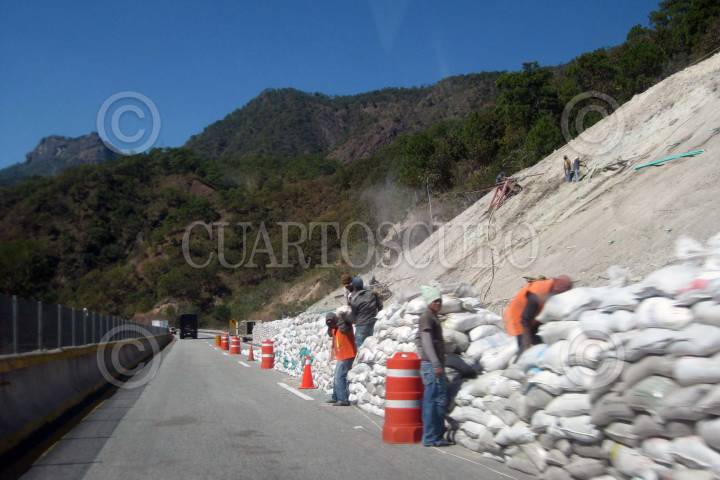 CHILPANCINGO, GUERRERO, 01FEBRERO2011.- Trabajos de rehabilitación que se realizan sobre la Autopista del Sol en el tramo Chilpancingo-Tierra Colorada, lo que causa molestia entre los automovilistas que circulan por esta vía diariamente, ya que se considera una de las mas caras del país, y siempre se encuentra en malas condiciones. FOTO: OSCAR ALVARADO/CUARTOSCURO.COM