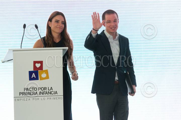 CIUDAD DE MÉXICO, 17ABRIL2018.- Ricardo Anaya, candidato presidencial de la coalición "Por México al Frente", y su esposa Carolina Martínez, firmaron el "Pacto por la Primera Infancia", en el Museo del Papalote. FOTO: MOISÉS PABLO /CUARTOSCURO.COM