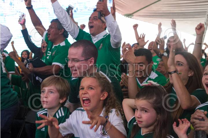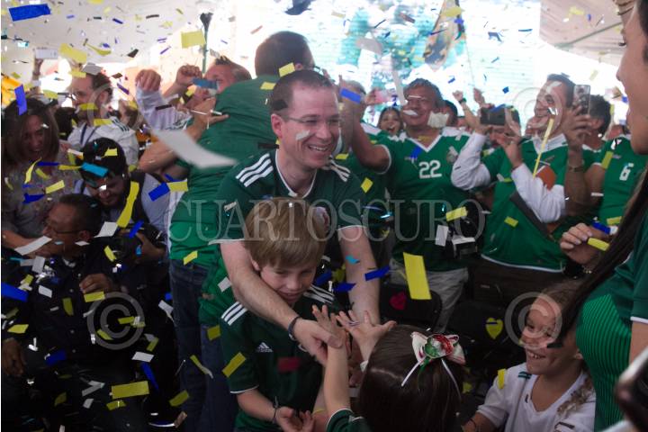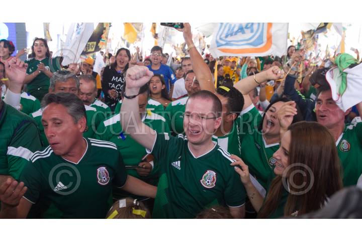 CIUDAD DE MÉXICO, 17JUNIO2018.- Ricardo Anaya, candidato presidencial de la coalición "Por México al Frente", observó el partido entre México y Alemania de la Copa del Mundo Rusia 2018, en la cual el tricolor se impusó 1-0- Al panista lo acompañaron su esposa, Carolina Martínez, sus dos hijos, y el candidato a la delegación Coyoacán por el frente, Manuel Negrete, junto con decenas de simpatizantes que se congregaron en calles de la colonia Culhuacán. FOTO: MOISÉS PABLO /CUARTOSCURO.COM