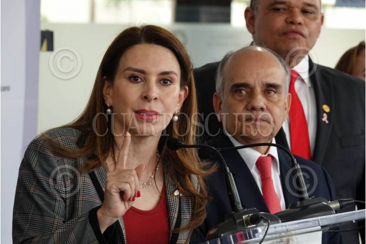 CIUDAD DE MÉXICO, 30OCTUBRE2024.- Los senadores Carolina Viggiano y Alejandro Moreno durante una conferencia de prensa en el Patio del Federalismo. FOTO: GRACIELA LÓPEZ/CUARTOSCURO.COM