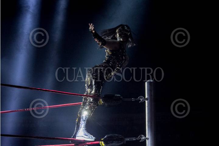 CIUDAD DE MÉXICO, 21MAYO2017.- La Federación Universal de Lucha Libre (FULL) realizó el evento “Distromanía” en las inmediaciones de la Carpa Astros. Con vuelos, caídas y llaves los aficionados disfrutaron de las maniobras profesionales de los deportistas. En la imagen, la luchadora Reyna Dorada. FOTO: GALO CAÑAS /CUARTOSCURO.COM