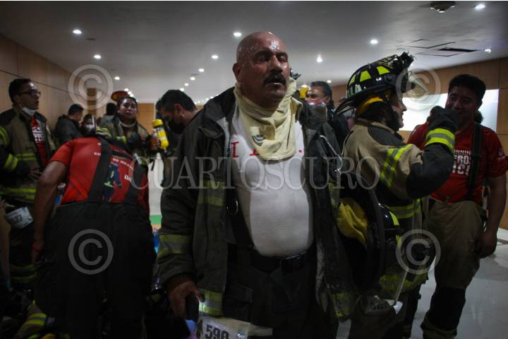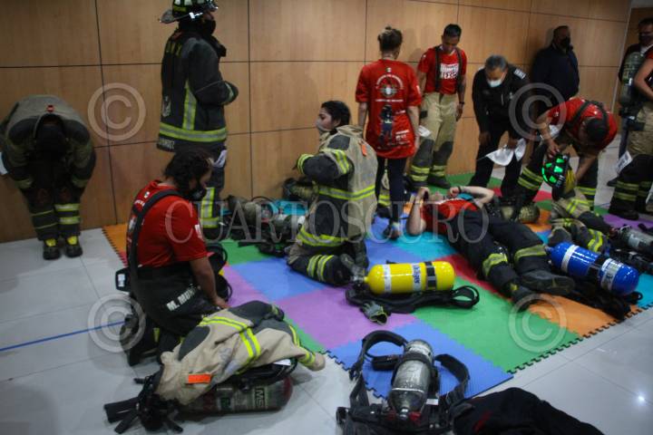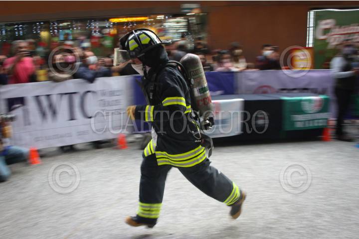 CIUDAD DE MÉXICO, 15DICIEMBRE2024.- Bomberos de distintas demarcaciones de la ciudad, participan en la edición 2024 de la "Carrera Vertical" que se realiza en el World Trade Center; Los participantes subieron 42 pisos que equivalen a 868 escaleras.FOTO: MAGDALENA MONTIEL/CUARTOSCURO.COM
