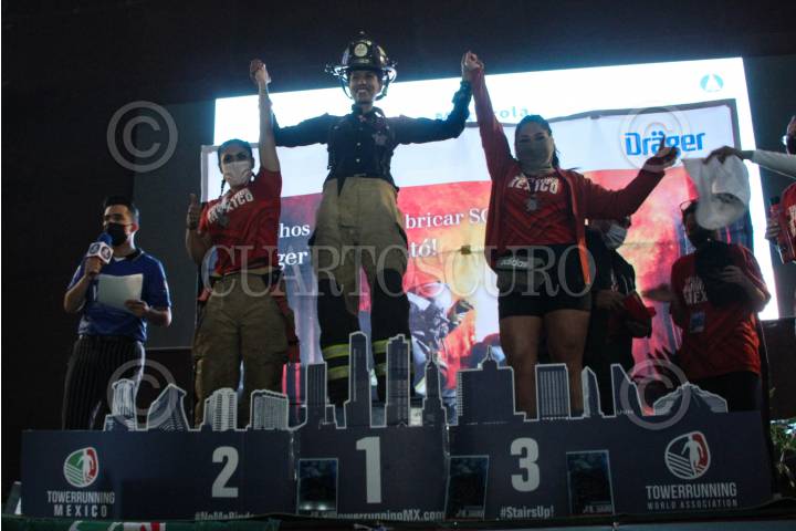 CIUDAD DE MÉXICO, 15DICIEMBRE2024.- Escuadrón de rescate y emergencias, participan en la edición 2024 de la "Carrera Vertical" que se realiza en el World Trade Center; Los participantes subieron 42 pisos que equivalen a 868 escaleras. FOTO: MAGDALENA MONTIEL/CUARTOSCURO.COM
