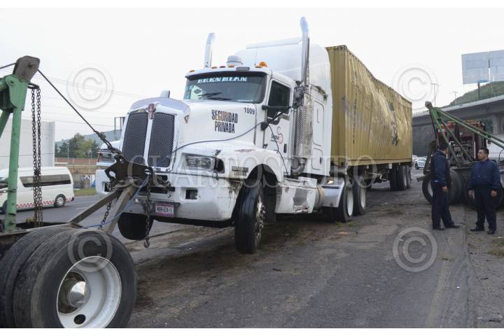 MÉXICO, D.F., 28MAYO2015.- Un conducto de tráiler perdió el control de su vehículo debido al exceso de velocidad, lo que provocó que se volcara sobre la Autopista México-Querétaro a la altura de Reyes Heroles. FOTO: ARMANDO MONROY /CUARTOSCURO.COM