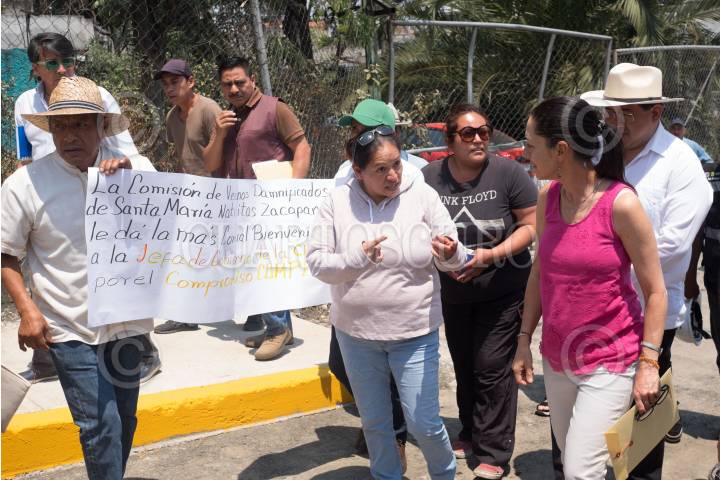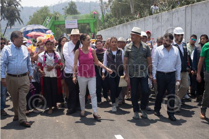 CIUDAD DE MÉXICO, 14ABRIL2019.- Claudia Sheinbaum, jefa de Gobierno y José Carlos Acosta, alcalde de Xochimilco llegaron a la reapertura de la Carretera Xochimilco-Tulyehualco, al cruce con la calle Cocoxochitl, colonia Tejomulco el Bajo, vialidad que fue afectada en el sismo del 19 de septiembre del 2017. FOTO: GRACIELA LÓPEZ /CUARTOSCURO.COM