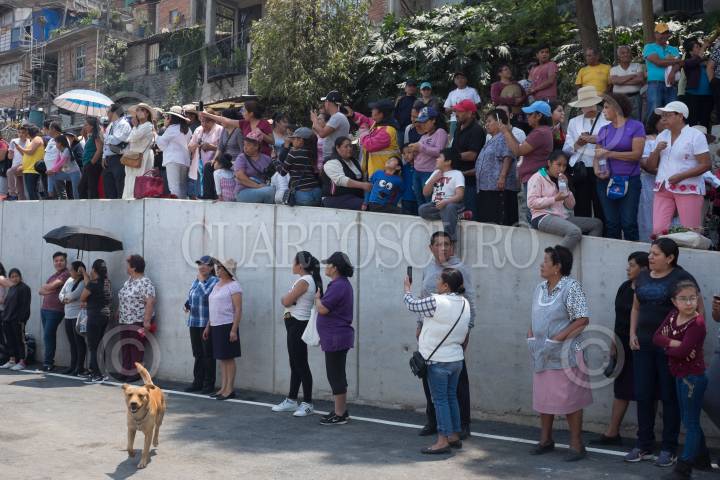 CIUDAD DE MÉXICO, 14ABRIL2019.- Vecinos de la colonia Tejomulco el Bajo esperan la llegada de Claudia Sheinbaum, jefa de Gobierno para el evento de reapertura de la Carretera Xochimilco-Tulyehualco, al cruce con la calle Cocoxochitl, vialidad que fue afectada en el sismo del 19 de septiembre del 2017. FOTO: GRACIELA LÓPEZ /CUARTOSCURO.COM