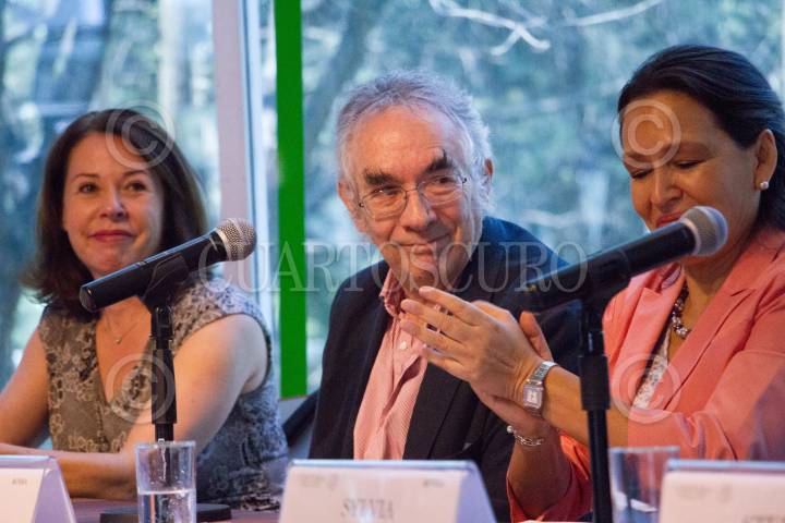 CIUDAD DE MÉXICO, 24FEBRERO2018.- Gabriel Carrington, Sylvia Navarrete y Lidya Camacho, encabezaron la conferencia de prensa del anuncio de la exposición "Cuentos Mágicos de Leonora Carrington, que se presentará en el museo de Arte Moderno de la ciudad. FOTO: VICTORIA VALTIERRA /CUARTOSCURO.COM